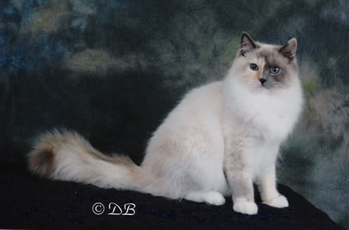| 布偶貓有四種花紋:雙色(bicolor)、白手套(mitted)、重點單色(colorpoint) 及 梵色(van)。 |